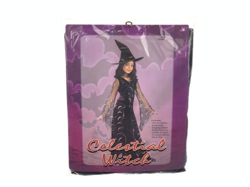 Čarodějnický kostým pro dívky ve věku cca 12–14 let. Sada obsahuje klobouk a kostým.