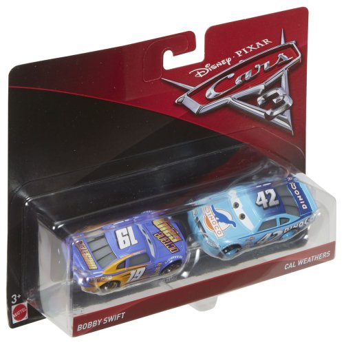 Toto skvělé dvojbalení aut přináší nejoblíbenější scény z filmu Auta 3 ze studií Disney a Pixar. Každé auto v měřítku 1:55 má autentické filmové designy, propracované detaily postav i kol, která se točí pro realistickou hru. Fanoušci si zamilují řadu dynamických postav nakombinovaných pro zábavu při kreativním vyprávění! Fanoušci filmu Auta si užijí přehrávání příběhů z filmu a vymýšlení nových vlastních dobrodružství! Každé dvojbalení se prodává samostatně v závislosti na dostupnosti.