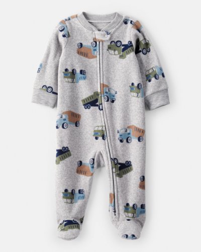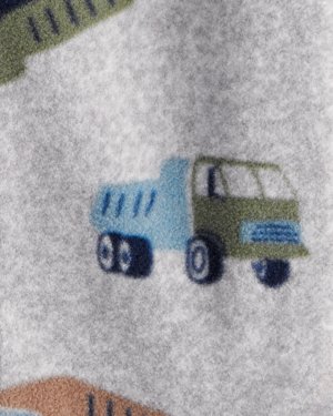 CARTER'S Overal na zip fleece Sleep & Play grey Truck chlapec NB/vel.56