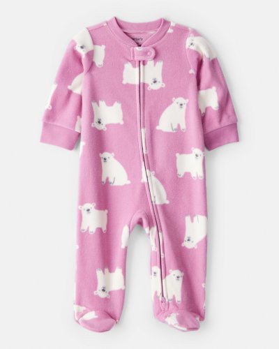 CARTER'S Overal na zip fleece Sleep & Play růžový Polar bear dívka NB/vel.56