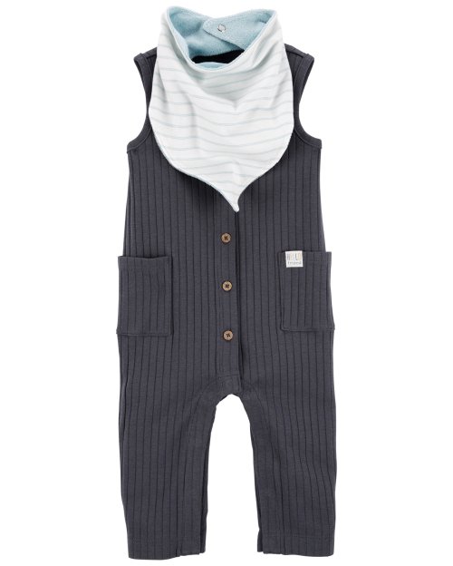 CARTER'S Set 2dílný overal bez rukávů, bryndáček Charcoal chlapec LBB NB/ vel. 56
