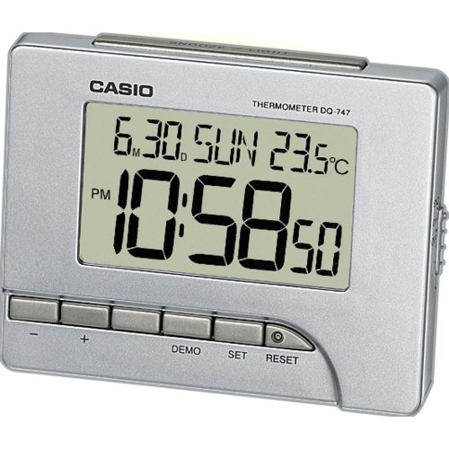 Budík Napájení z baterie Pouzdro ve tvaru obdelníku Plastové pouzdro Stříbrná barva pouzdra Digitální ciferník Ciferník s arabskými čísly LED osvětlení displeje Budík Teploměr