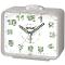 Budík Napájení z baterie Pouzdro ve tvaru obdelníku Plastové pouzdro Šedá barva pouzdra Ručičkový ciferník Bílá barva ciferníku Ciferník s arabskými čísly Budík