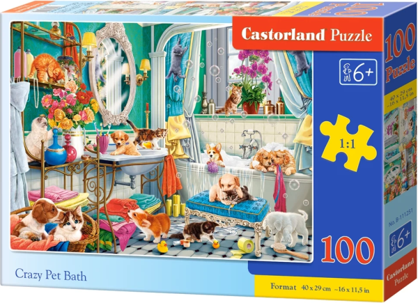 CASTORLAND Puzzle Bláznivá koupel domácích mazlíčků 100 dílků