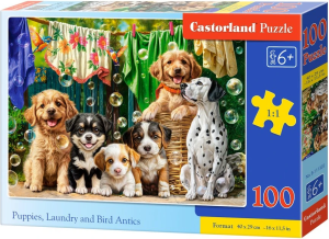 CASTORLAND Puzzle Štěňata, prádlo a ptačí dovádění 100 dílků