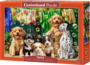 CASTORLAND Puzzle Štěňata, prádlo a ptačí dovádění 500 dílků