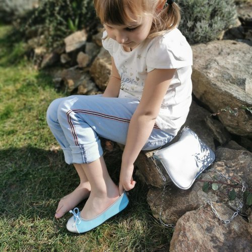 Modro-stříbrné skládací baleríny s kabelkou nadchnou každou malou princeznu z ledového království.