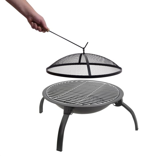 Ohniště je navíc vybaveno roštem a čtyřmi skládacími nohami pro lepší skladnost.