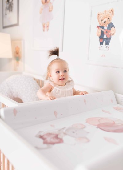 DŮLEŽITÉ. UCHOVEJTE PRO BUDOUCNOST PŘEČTĚTE POZORNĚ VAROVÁNÍ: NENECHÁVEJTE DÍTĚ BEZ DOZORU Měli bychom si uvědomit všechna rizika, která jsou s používáním otevřeného ohně a jiných zdrojů tepla, jako jsou elektrické sporáky, plynové sporáky atd. v blízkosti přebalovací podložky spojená. Přebalovací podložka je určena pro děti ve věku 0-12 měsíců (max. 11 kg). Pokud zjistíte jakékoliv poškození, přestaňte podložku používat. Pro údržbu a čištění používejte pouze vodu. Nepoužívejte k čištění vlhčené ubrousky pro děti, dětské oleje, tělová mleka všech značek, čistící prostředky, kartáče a jiné čisticí a konzervační prostředky. Vlhčené ubrousky pro děti, mléka, oleje, čisticí prostředky apod. přispívají k poškození povrchové vrstvy výrobku. Přebalovací podložka je určena k umístění na dětskou postýlku. Je určena pro každodenní péči o kojence. Jakékoliv změny barvy tisku vyplývají z přirozeného opotřebování výrobku. POZOR! Zabezpečovací nohy proti uklouznutí by měly být řádně připevněny a pravidelně kontrolovány. Jakékoli příslušenství nebo náhradní díly získávejte pouze od výrobce, distributora nebo prodejce. Přestaňte podložku používat, pokud jakýkoli díl je zlomený, roztrhaný nebo chybí.
