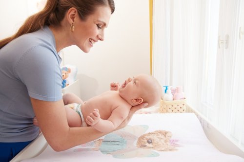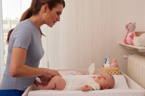 Výplň podložky je měkká a zajišťuje dítěti pohodlí během péče. Podložka je určena k položení na komodu nebo jiný stabilní povrch.