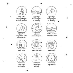 6. Údržba výrobku: polštář by měl být pravidelně čištěn podle pokynů. Ujistěte se, že polštář je po praní úplně suchý, než ho opět použijete. Důležité: Před každým použitím vždy zkontrolujte stav polštáře, aby byla zajištěna maximální bezpečnost a pohodlí pro vás i vaše dítě. VAROVÁNÍ: NENECHÁVEJTE DÍTĚ BEZ DOZORU