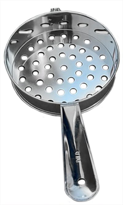 Český výrobce. Průměr 17 a výška 4 cm, otvory průměr 11 mm. Cedník na halušky z pocínovaného plechu. EAN 8595082253069