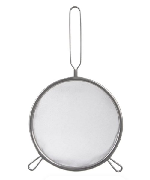 Cedník s velmi jemným sítkem (oka 0.45 x 0.45 mm), s rukojetí a očkem dobře drží na hrnečku. Průměr 24.5 cm, délka 39 cm. Nerezová ocel. Vhodné do myčky nádobí. EAN 8592381227081