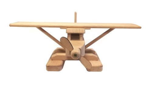 Dřevěný model letadla je vyroben z vysoce kvalitního bukového dřeva. Jeho povrch je pouze voskován a leštěn, není nijak chemicky upravován či barven, aby byl zachován přírodní vzhled. Dřevěnému letadlu se točí vrtule a nemá žádné ostré hrany. Je vhodné i na pískoviště. Hlavní vlastnosti: Precizní zpracování bukového dřeva Zaoblené hrany Pohyblivé prvky modelu