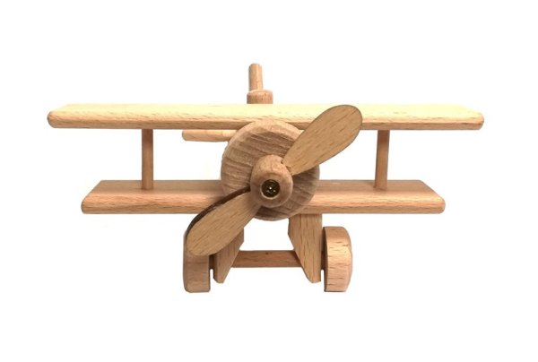 Dřevěný model letadla je vyroben z vysoce kvalitního bukového dřeva. Jeho povrch je pouze voskován a leštěn, není nijak chemicky upravován či barven, aby byl zachován přírodní vzhled. Dřevěnému letadlu se točí vrtule i kolečka a nemá žádné ostré hrany. Je vhodné i na pískoviště. Hlavní vlastnosti: Precizní zpracování bukového dřeva Zaoblené hrany Pohyblivé prvky modelu