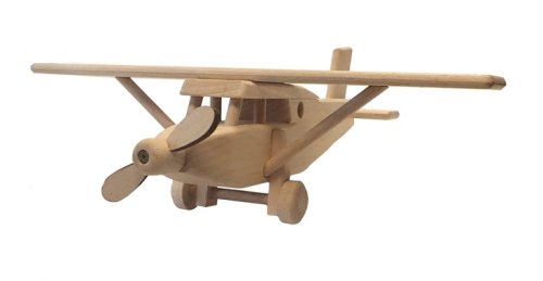 Dřevěný model letadla je vyroben z vysoce kvalitního bukového dřeva. Jeho povrch je pouze voskován a leštěn, není nijak chemicky upravován či barven, aby byl zachován přírodní vzhled. Dřevěnému letadlu se točí vrtule i kolečka a nemá žádné ostré hrany. Je vhodné i na pískoviště. Hlavní vlastnosti: Precizní zpracování bukového dřeva Zaoblené hrany Pohyblivé prvky modelu