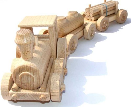 Dřevěný model vláčku je vyroben z vysoce kvalitního bukového dřeva. Jeho povrch je pouze voskován a leštěn, není nijak chemicky upravován či barven, aby byl zachován přírodní vzhled. Dřevěnému vláčku se točí kolečka a nemá žádné ostré hrany. Je vhodné i na pískoviště. Hlavní vlastnosti: Precizní zpracování bukového dřeva Zaoblené hrany Pohyblivé prvky modelu