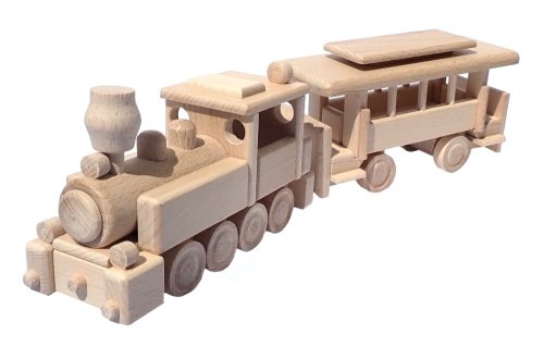 Dřevěný model vláčku je vyroben z vysoce kvalitního bukového dřeva. Jeho povrch je pouze voskován a leštěn, není nijak chemicky upravován či barven, aby byl zachován přírodní vzhled. Dřevěnému vláčku se točí kolečka a nemá žádné ostré hrany. Je vhodné i na pískoviště. Hlavní vlastnosti: Precizní zpracování bukového dřeva Zaoblené hrany Pohyblivé prvky modelu