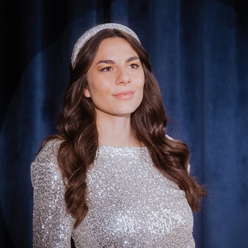 Elegantní čelenka, která vyniká leskem a sofistikovaným designem. Sametový povrch v kombinaci se zářivými detaily vytváří královský vzhled, který podtrhne každý outfit – ať už slavnostní, nebo každodenní.