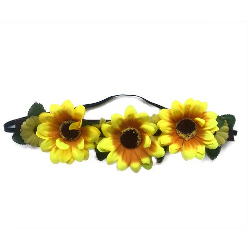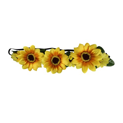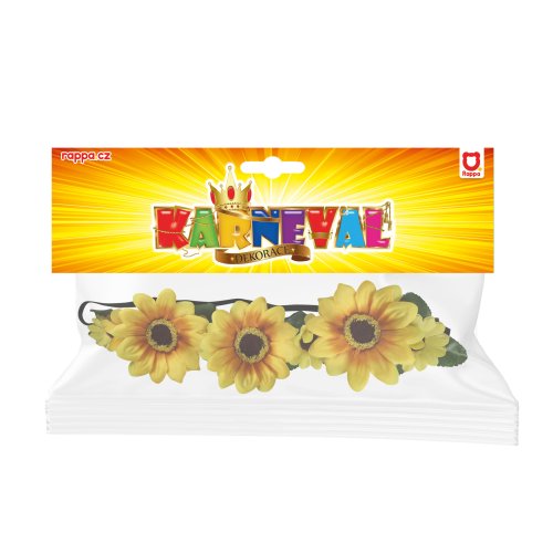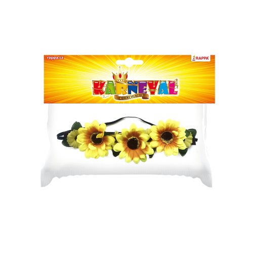 Půvabná čelenka zdobena žlutými květy a zelenými lístky, je skvělým doplňkem nejen na karneval. Čelenka je na gumu a ve vlasech vypadá bezvadně!