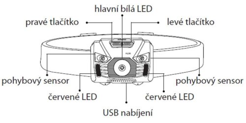 Čelovka je vybavena pohybovým senzorem díky kterému můžete světlo vypnout/zapnout! Čelová svítilna SWEEP má více funkcí, které pomohou při práci nebo sportu a které jsou volitelné pomocí dvou tlačítek na horní straně svítilny.