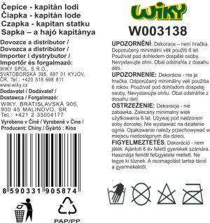 Jdete na karneval? Chcete být originální? Zkuste tuto bílou látkovou čepici bude skvělým doplňkem ke kostýmu kapitána. Čepice s kšiltem je ozdobena látkovou kotvou. Rozměr čepice: 27 x 24 cm Není hračka