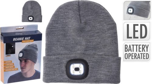 4LED 3 režimy světla materiál: 50% akryl, 50% polyester barva: šedá velikost: 20 x 22 cm USB nabíjení