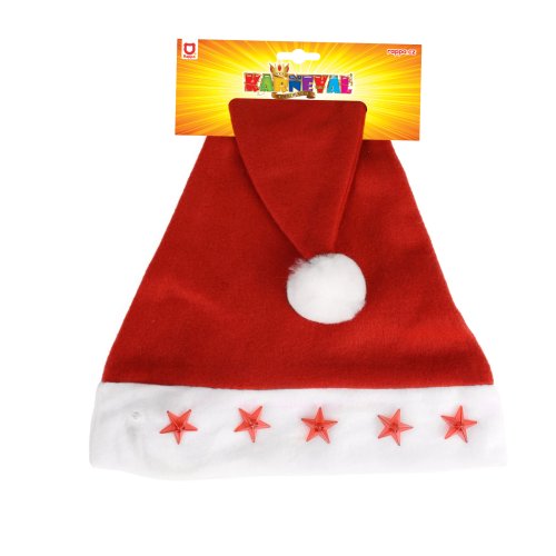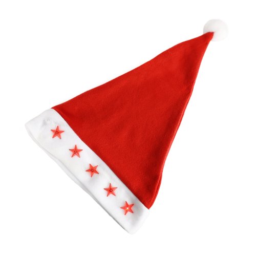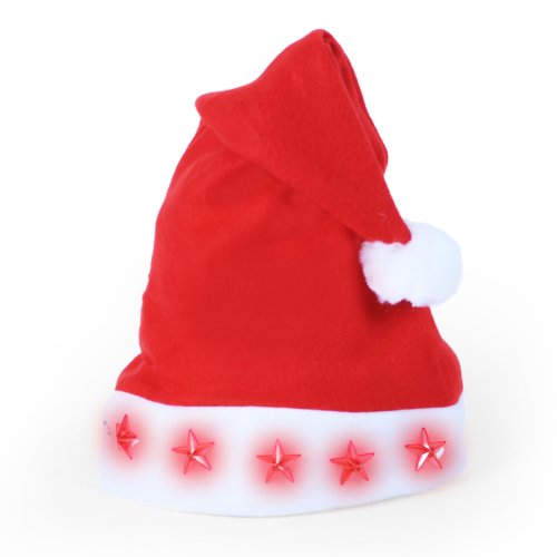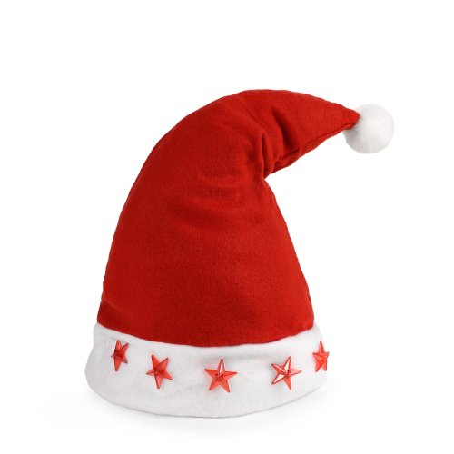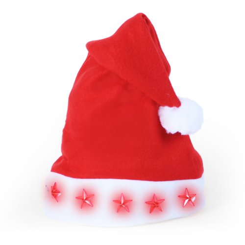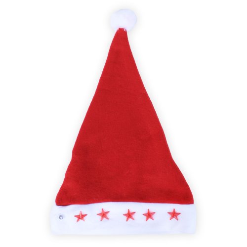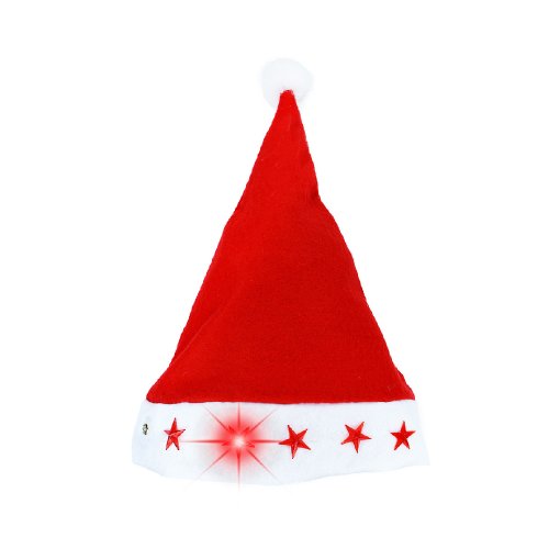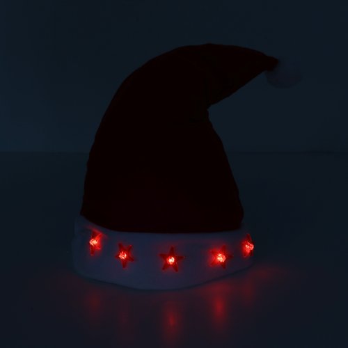 Krásná vánoční čepice s hvězdičkami, které blikají! Čepice je vyrobena z filcu a obsahuje 2 ks baterií typu LR44. Stisknutím tlačítka na kraji čepice začnou hvězdičky na čepici blikat. Perfektní doplněk na vánoční večírek!