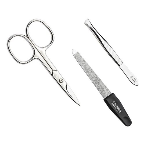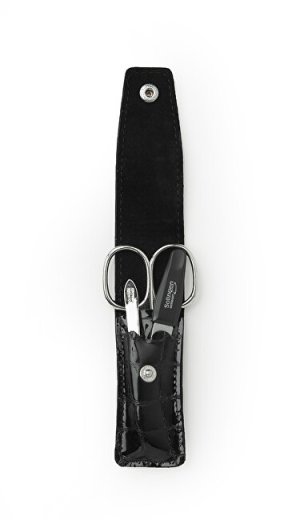 Luxusní manikúrová sada z černé syntetické kůže a lesklého niklu se díky své velikosti vejde do každého zavazadla, a může vás tak doprovázet na všech cestách! Zárukou výjimečné kvality je místo výroby manikúrových nástrojů, které pochází z německého města Solingen. To proslulo výrobou špičkových ocelových výrobků pro manikúru a pedikúru a jeho ochrannou známkou se mohou označovat pouze ti nejlepší výrobci.