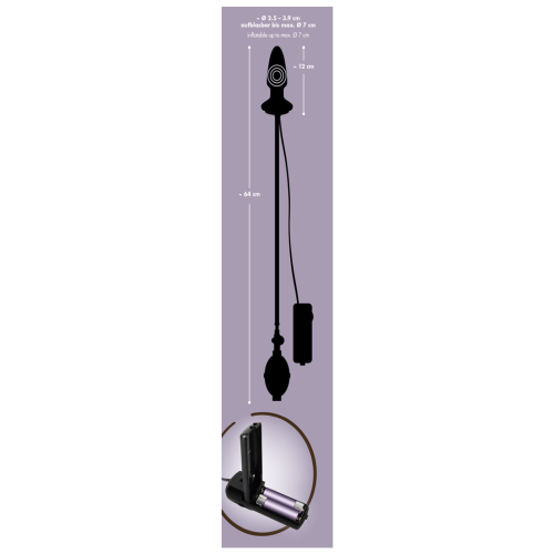 Prožijte něco zcela mimořádného! Pomocí balónku tuto speciální "zátku" natvarujete přímo na váš zadeček nebo mušličku (dle potřeby přifouknete). Potom už stačí jen pomocí ovládání zapnout vibraci ... Délka 12 cm, průměr variabilní.Pohon 2 tužkové baterie.
