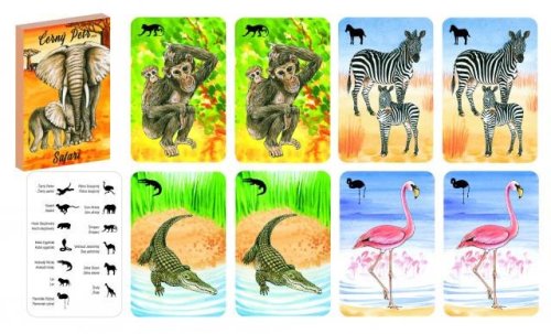 Hrací karty pro dětskou hru Černý Petr s obrázky zvířátek ze safari. Všechny karty se rozdají zúčastněným hráčům tak, aby nebylo vidět, kdo Černého Petra dostal. Následně hráči odloží stejné dvojice karet na stůl (podložku) a zbývající karty si rozloží v ruce. Hráči si nabízí karty v kruhu a tvoří stejné dvojice. Prohraje ten, komu zůstane v ruce Černý Petr. Pro obměnu je možno si s kartami zahrát také pexeso.