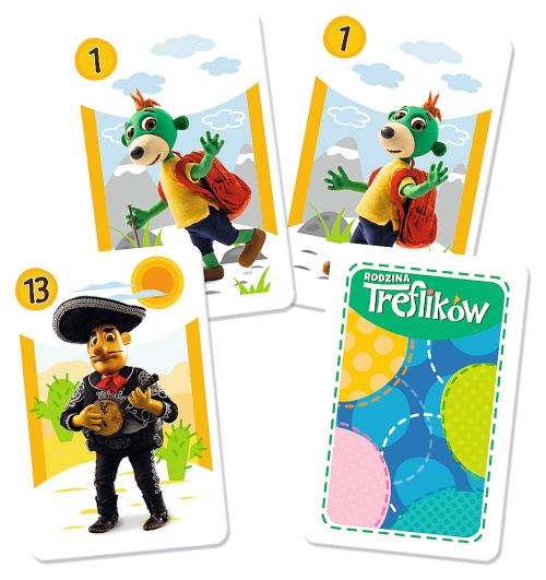 Dětská karetní hra Černý Petr s obrázky s rodinou Treflíků. Všech 25 karet se rozdá zúčastněným hráčům tak, aby nebylo vidět, kdo Černého Petra dostal. Následně hráči odloží stejné dvojice karet na stůl (podložku) a zbývající karty si rozloží v ruce. Hráči si nabízí karty v kruhu a tvoří stejné dvojice. Prohraje ten, komu zůstane v ruce Černý Petr. Balení: 25 karet v papírové krabičce