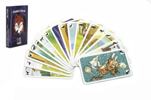 Oblíbená hra Černý Petr s motivem zvířátek. V papírové krabičce 6,5x10,5x1 cm.