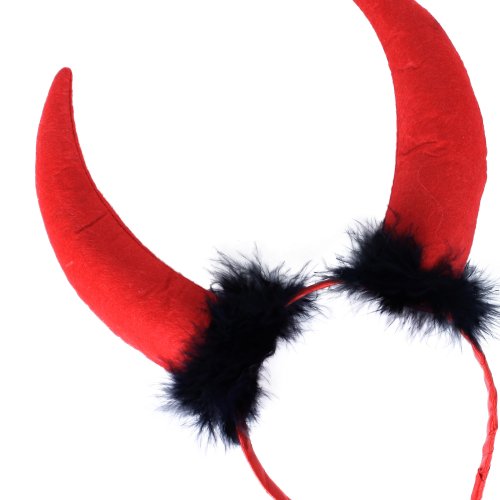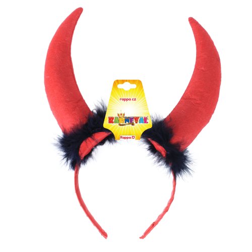 Nepřehlédnutelné maxi rohy na saténové čelence jsou vyrobeny z filcu a zdobeny hebkým peřím. Tyto stylovky jsou perfektním doplňkem ke kostýmu čerta nebo čertice!