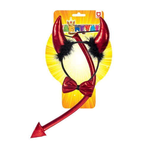 Roztomilá čertí sada, ve které najdete čelenku s rohy, ocas a stylového motýlka. Tento doplněk je ideální na mikulášský večírek.