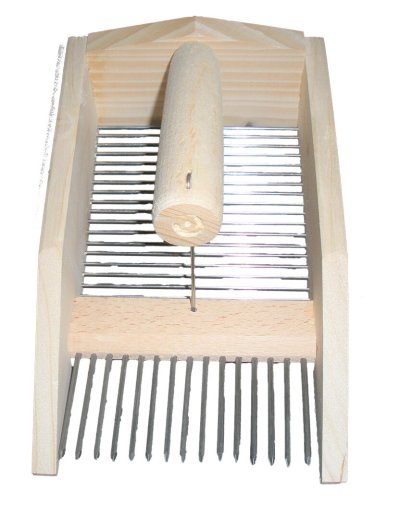 Česáček na borůvky je vyroben z tvrdého dřeva a nerezových drátků. Vhodný na rychlé a jednoduché sklízení borůvek.