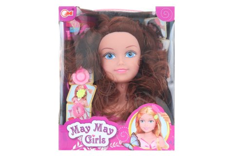 Česací hlava o rozměru cca 17 x 22 x 9 cm a gumičky, spirálky na vlasy, sponky, hřebínek a jiné doplňky. Rozměr balení cca 22,5 x 28,5 x 12 cm. Věk 3+