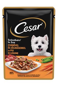 Cesar kapsičky pro dospělé psy malých plemen - neprochází tak dlouhým sterilizačním procesem, jako konzervy. Proto si zachovávají lepší chuťové vlastnosti a nutriční hodnoty. Kapsičky Cesar jsou vyrobeny bez konzervačních látek a nemají přidávaná barviva ani cukry. Kompletní plnohodnotné krmivo pro dospělé psy splňující veškeré nutriční nároky na výživu psů.