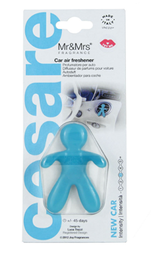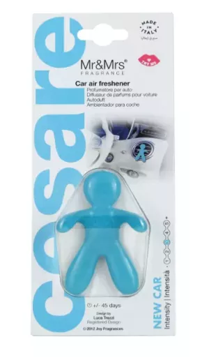Mr&Mrs Fragrance Cesare New Car je stylový a elegantní osvěžovač vzduchu do auta ve tvaru ikonického panáčka Cesare. Vůně kombinuje šťavnaté ovocné tóny jablka a pomeranče, jemné květinové akordy jasmínu, lilie, růže a šafránu a teplé dřevité nuance s jantarem a pižmem, což dohromady vytváří harmonický, sofistikovaný zážitek, který promění každou jízdu. Panáček se snadno připevňuje na ventilační mřížku a postupně uvolňuje svou vůni po dobu 1–2 měsíců. Je vyroben z netoxického polymeru EVA, neobsahuje alkohol ani dráždivé látky, a je certifikován prestižní organizací IFRA, takže je zcela bezpečný pro vás i interiér auta.