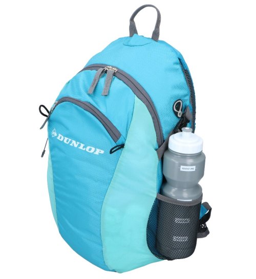 Voděodolný batoh Dunlop.Cestovní batoh Dunlop s obalem je extrémně skladný batoh s integrovanou ochranou.Má dvě hlavní komory zapínané na zip.Další výhodou jsou boční síťované kapsy, kam si můžete dát láhev s vodou.Skvěle se hodí na turistické výlety, turistiku nebo i běžnou delší procházku.Batoh na trhu se vyznačuje svou univerzálností.Kapacita: 24LMateriál: polyesterJedná se o voděodolný batoh.Barva Modrá