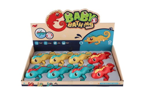Zvířátko na natažení do vany nebo bazénu. Tento chameleon do vody určitě zpříjemní dětem koupání. Užijí si s ním spoustu zábavy. Zvířátko po natažení pluje po hladině. Velikost zvířátka je cca 14 cm. Rozměry výrobku 10 x 5 x 14 cm. Vhodné pro děti od 18 měsíců.