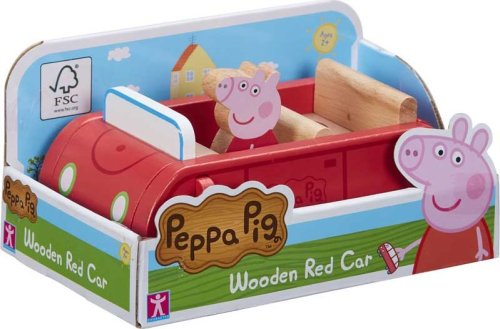 Dřevěná hračka inspirovaná oblíbeným animovaným seriálem Prasátko Peppa. Auto je ideální i pro menší děti, které ho snadno uchopí do ruky. Kolečka vozidla jsou rotační, děti s ním tedy mohou jezdit po podlaze nebo třeba po stole. Hračka je ze přední i zadní strany opatřena magnety, díky kterým je možné spojit více vozidel dohromady. Sada obsahuje: