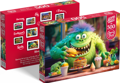 Nejprve se smějete. Pak se divíte proč. Protože tahle zelená příšerka je super roztomilá! Tento hlupáček má nádherné zelené barvy a legrační poletující vlasy. Oči se mu, stejně jako lidem, lesknou od pohledu na nějaké pamlsky. A co teprve, když se na něj podíváte? Podívejte se na ty velké přihlouplé zuby! Skládat puzzle s touto barevnou příšerkou bude opravdová zábava. Všichni se těšíme, že vám náš malý kamarád zlepší náladu! Rozměr složeného puzzle cca 50 x 34,5 cm