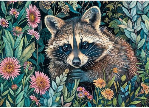 CHERRY PAZZI Puzzle Mýval v květinách 1000 dílků