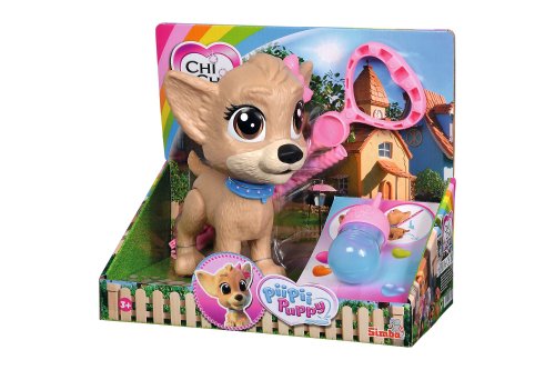 CCL Pejsek čivava Pii Pii umí dělat loužičky. Dejte pejskovi napít z lahvičky a vyrazte na procházku. Když trošku zatlačíte na vodítko, pejsek pokrčí zadní nohy a udělá loužičku. Balení obsahuje pejska, vodítko a lahvičku na pití. Velikost pejska 20 cm.