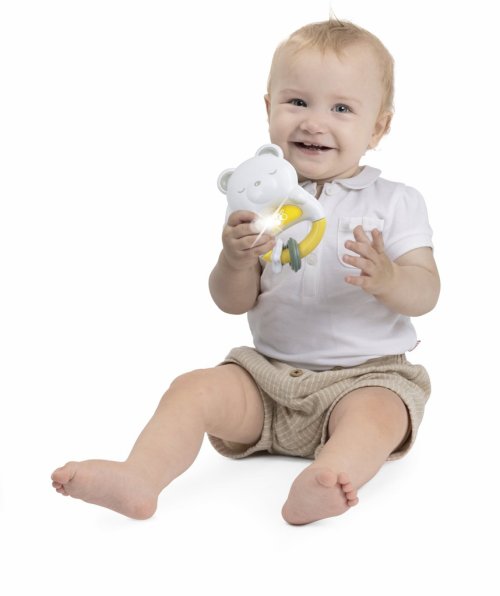 První elektronické chrastítko se světly, melodiemi a zvuky, které se stane nočním kamarádem a nočním světýlkem.