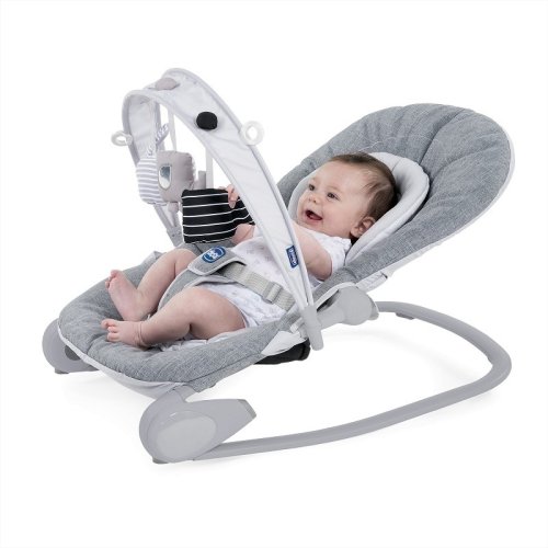 Houpátko Chicco Hoopla je nejen místo pro odpočinek děťátka, ale je vhodné pro zábavu a přispívá k jeho rozvoji. Inovativní posouvatelný pás SlideLine umožňuje přesouvat hračky na hrazdičce v libovolném pořadí, a tím nabízí spoustu nových scénářů hry. Díky tomu si trénuje paměť, koordinaci pohybů, šustění stimuluje sluch a děťátko má před sebou pokaždé novou výzvu. Hračky, které jsou součástí balení, lze sundat a používat jako samostatnou hračku.