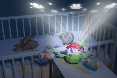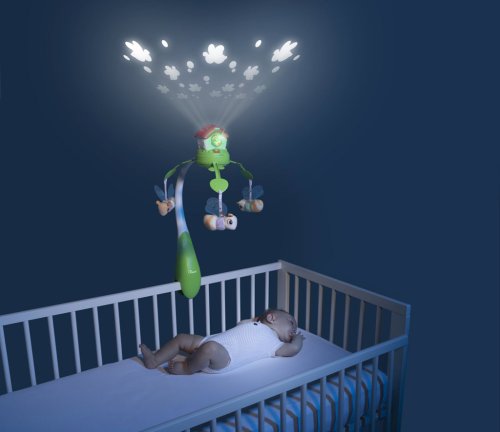Funkce 3v1 1.Kolotoč na postýlku s projektorem (0-6 m) 2.Projektor volně stojící u postele (0-36 m) 3.Aktivní centrum na hraní - odnímatelné včelky a úl (6-36 m)