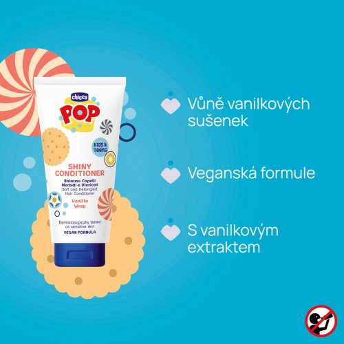 Kondicionér na vlasy Chicco Vanilla wrap POP je dokonalý doplněk péče o vlasy, který pomáhá rozčesat vlasy a zanechává je jemné a voňavé.