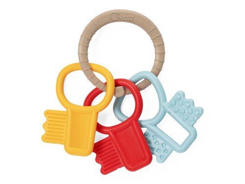 Ikonická kousátka Chicco ve tvaru klíčků z kolekce Eco+ je vyrobena z recyklovaného plastu. Kousátko stimuluje koordinaci, chrastí při třesení a zklidňuje dásně při růstu zoubků. Má 3 různobarevné chrastící klíčky s různými vložkami a texturami, díky kterým zvyšuje zájem dítěte a podporuje rozvoj jeho dovedností.